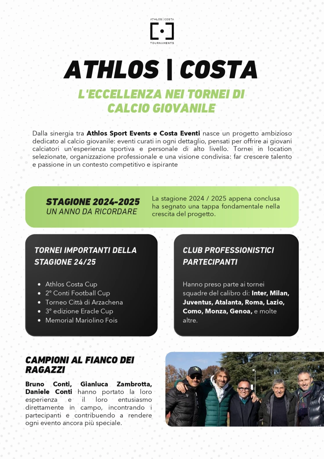 Athlos | Costa Tournaments è una collaborazione che fonde le competenze e le risorse di due realtà, per creare un nuovo e avvincente capitolo nel mondo dei tornei di calcio giovanile.